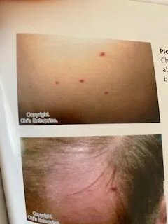 This photo shows the red cherry angiomas on the belly, which tell your there is too much estrogen in the body and the liver is having a hard time getting rid of it. The tongue shows the same thing with the red dots on both sides of the tongue you can see through the coating,